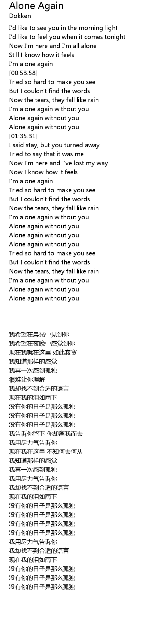 [01:18.34] Alone again without you