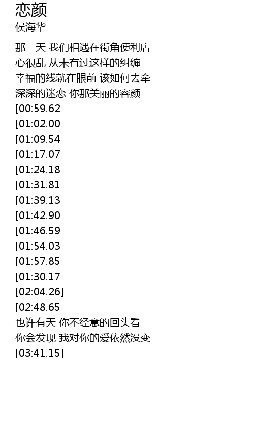 | [03:01.51][01:42.90] | 埋藏对你的爱恋 |