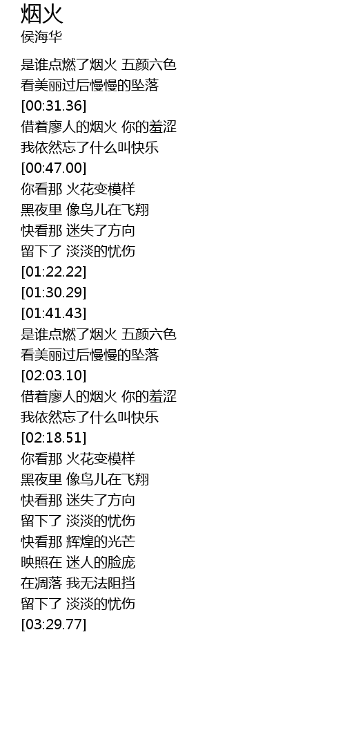 | [01:49.73] | 是谁点燃了烟火 五颜六色 |