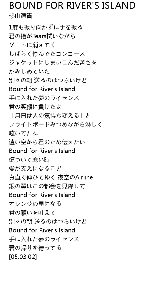 | 歌曲 | BOUND FOR RIVER'S ISLAND |