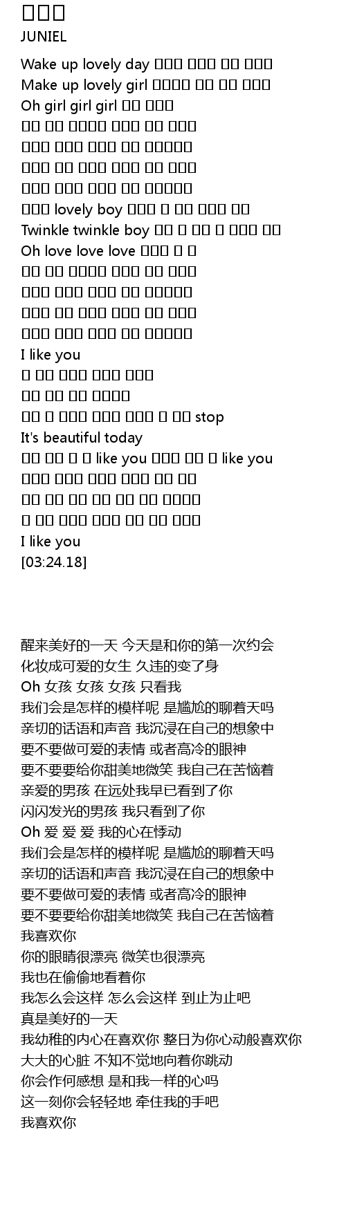 | [00:14.41] | Wake up lovely day 오늘은 그대와 처음 데이트 |