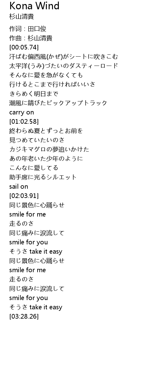 | 歌曲 | Kona Wind |
