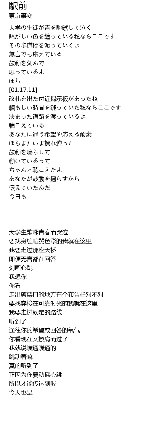 | [01:21.33] | 改札を出た付近掲示板があったね |