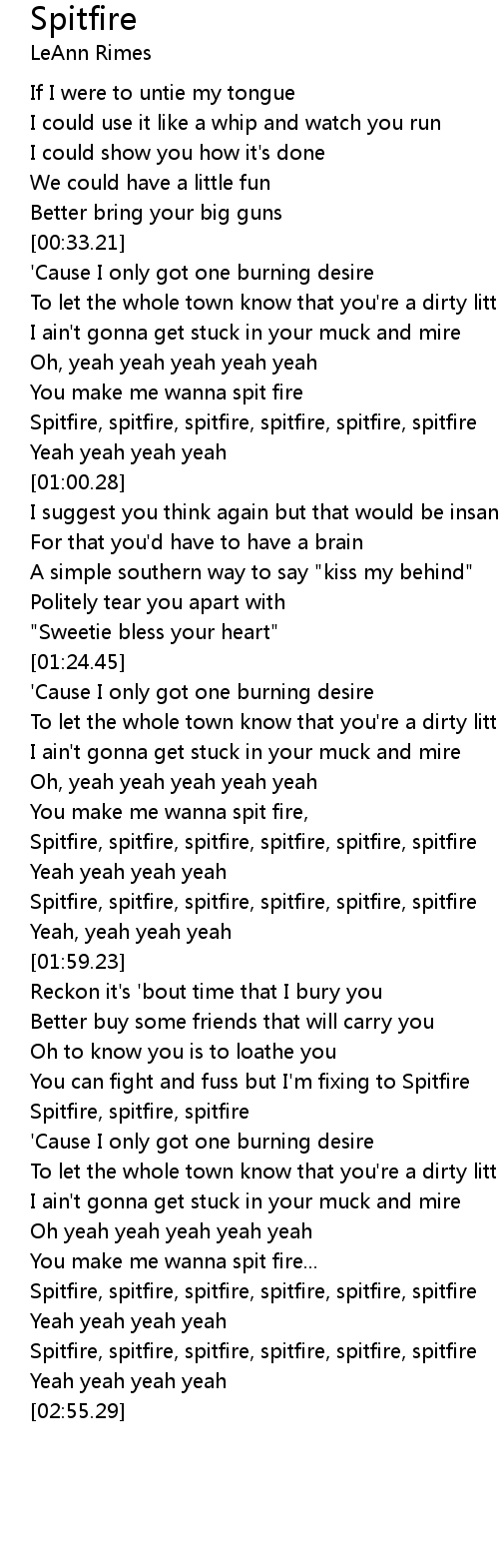 Spitfire, spitfire, spitfire, spitfire, spitfire, spitfire |