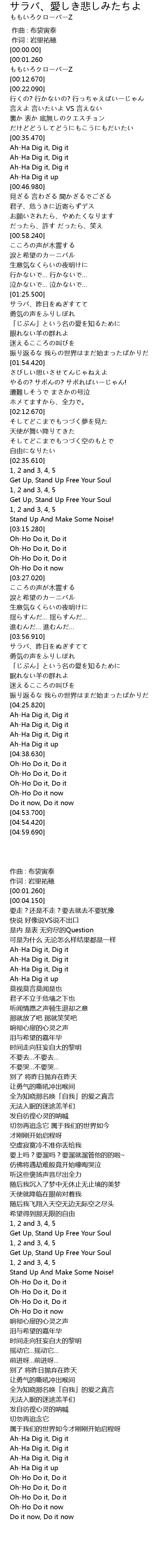 | [03:58.600] | サラバ、昨日をぬぎすてて |