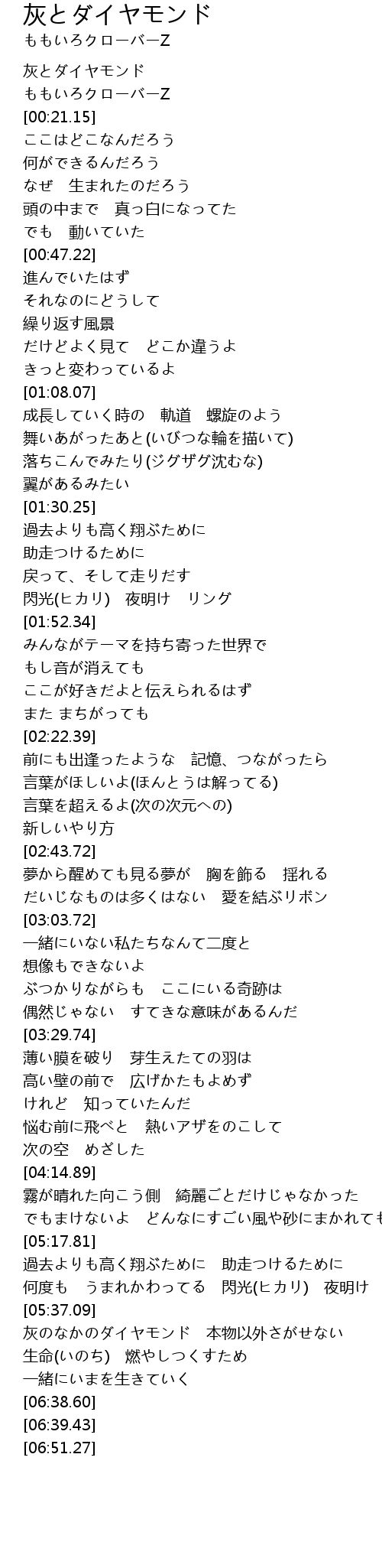 | [05:57.55] | 灰のなかのダイヤモンド 本物以外さがせない |