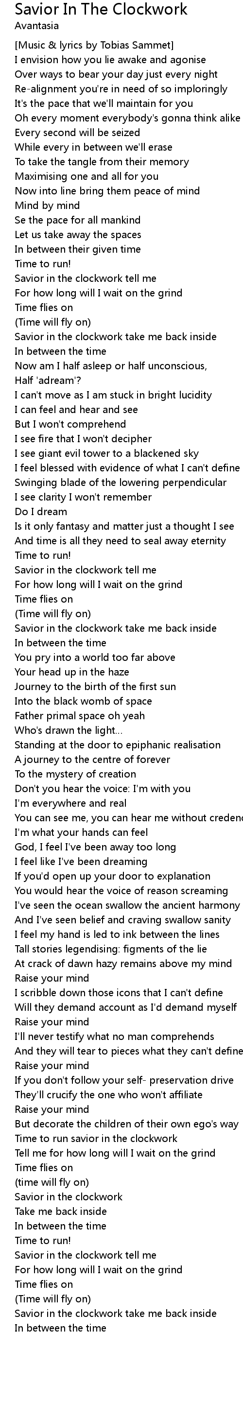 | Savior in the clockwork tell me | |