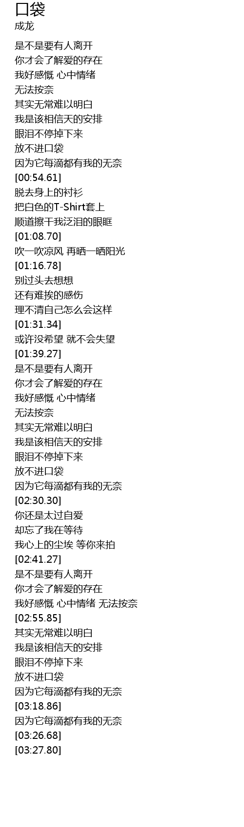 | [02:50.66] | 我好感慨 心中情绪 无法按奈 |