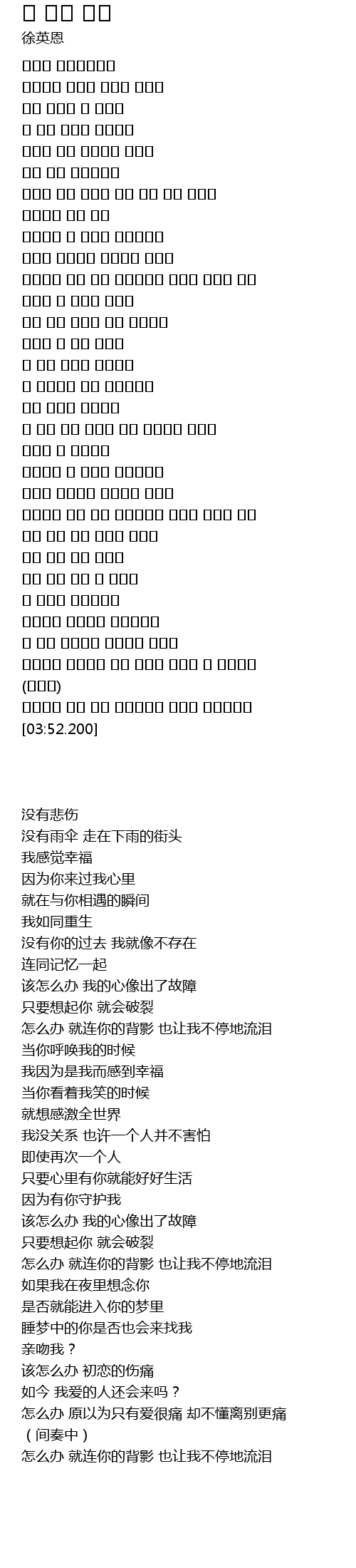 | [02:22.63] | 该怎么办 我的心像出了故障 |