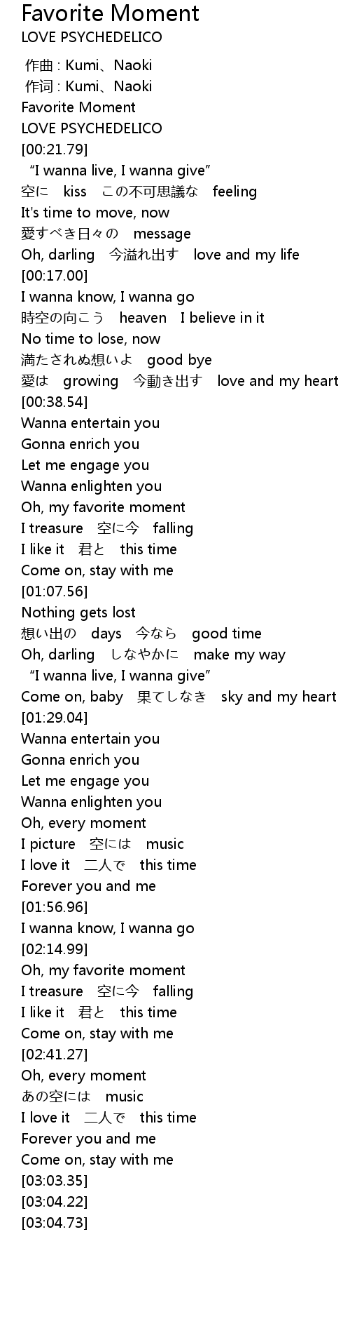 | [00:18.82] | LOVE PSYCHEDELICO |