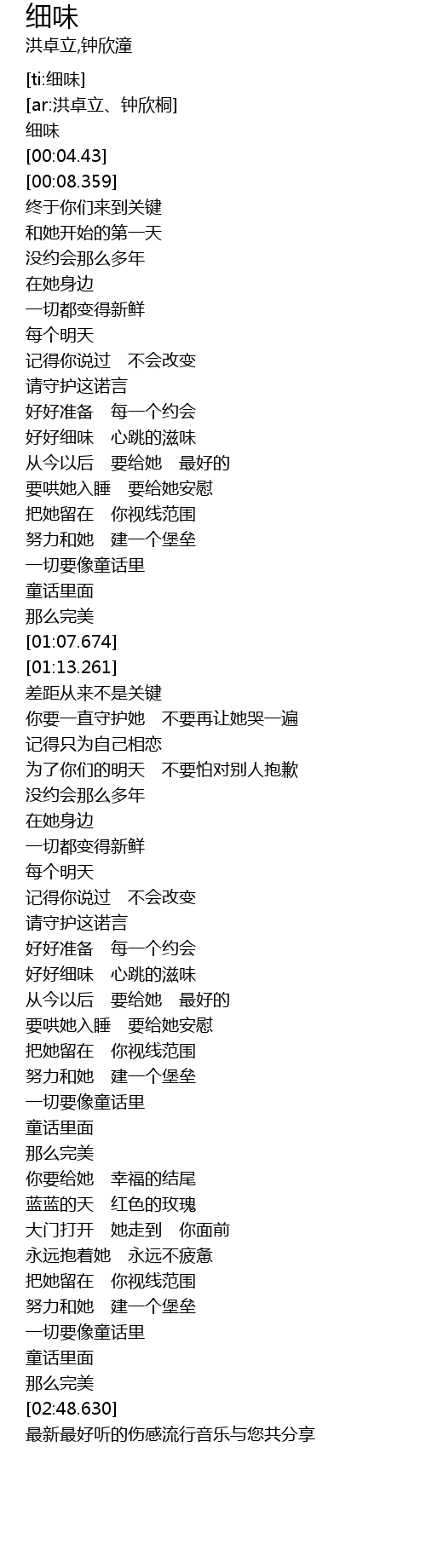 | [00:03.434] | 细味 |