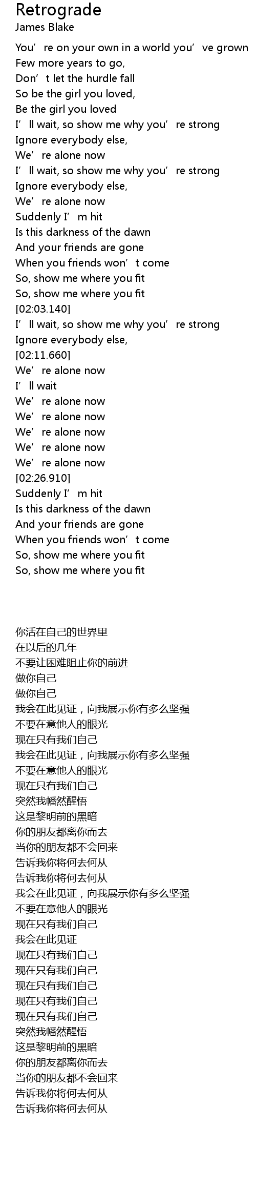 | [00:48.550] | You’re on your own in a world you’ve grown |