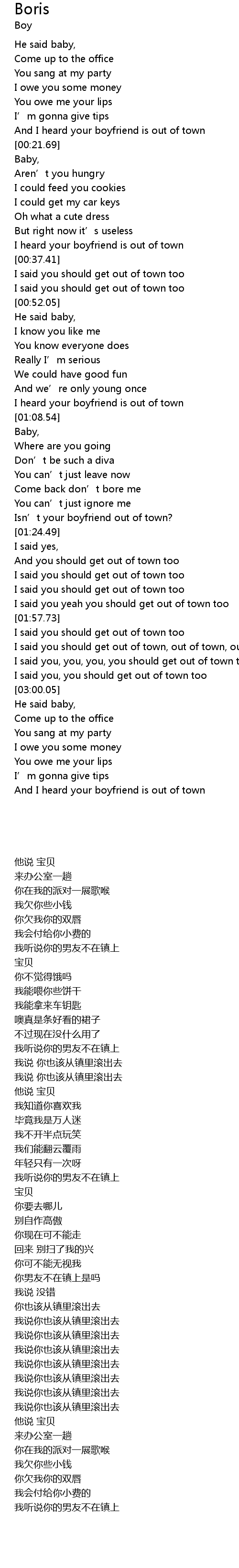 | [02:37.19] | I said you should get out of town, out of town, out of town |