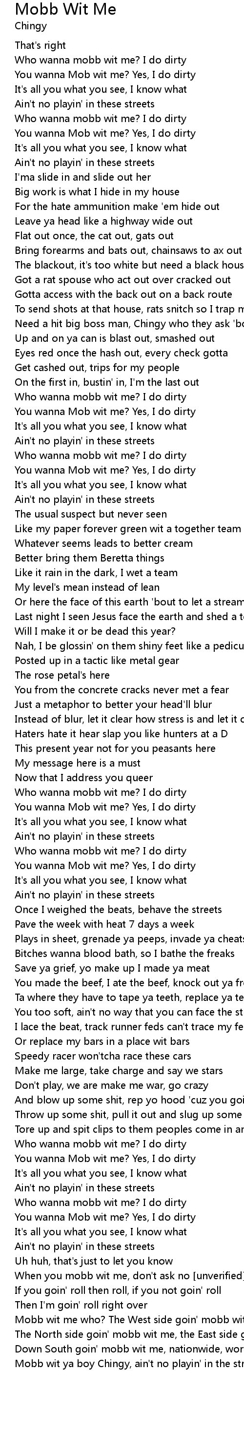 You wanna Mob wit me? Yes, I do dirty |
