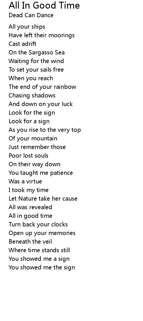 | 歌曲 | All In Good Time |