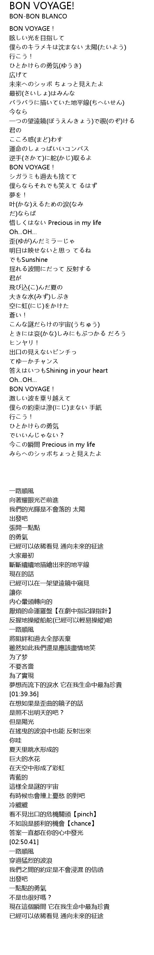 | [03:28.65] | BON VOYAGE! |