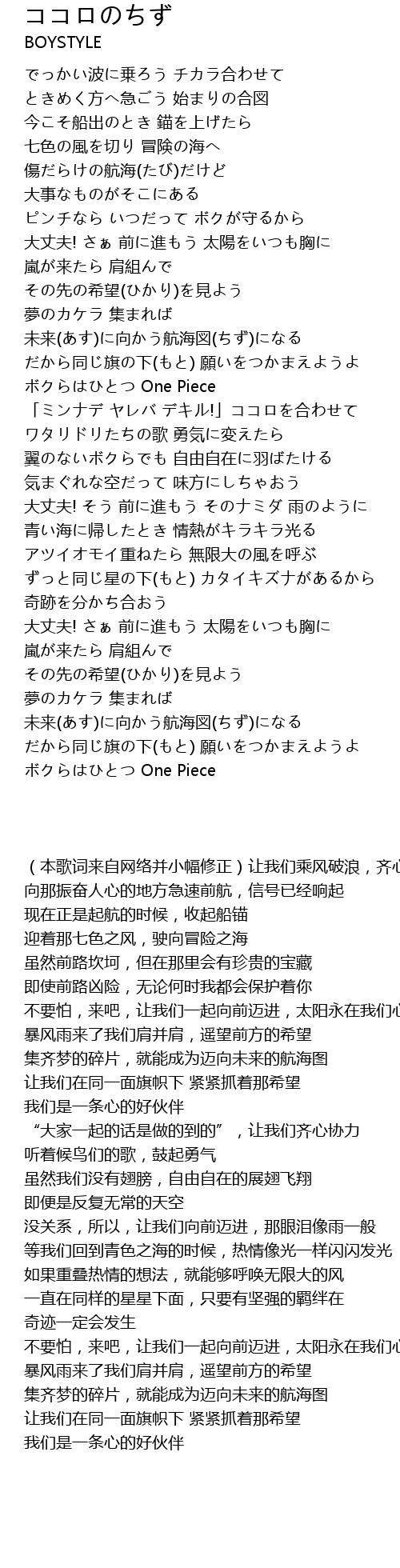 | [00:33.050] | (本歌词来自网络并小幅修正)让我们乘风破浪,齐心协力 |