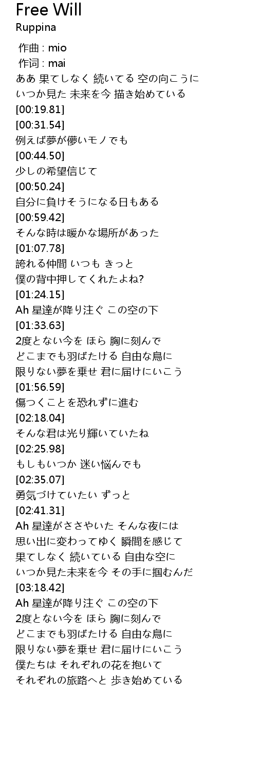 | [01:41.63] | どこまでも羽ばたける 自由な鳥に |
