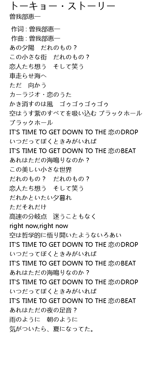 | 歌曲 | トーキョー・ストーリー |