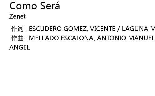 | [00:00.000] | 作词 : ESCUDERO GOMEZ, VICENTE / LAGUNA MADRAZO, ANTONIO JAVIER |