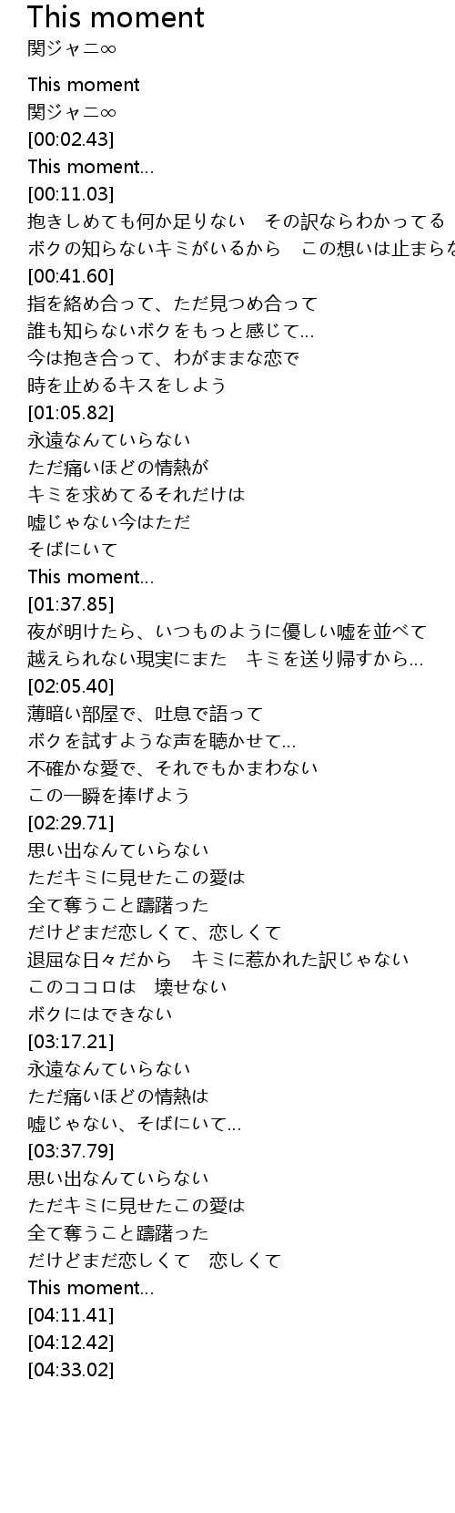 | [00:42.04] | 指を絡め合って、ただ見つめ合って |