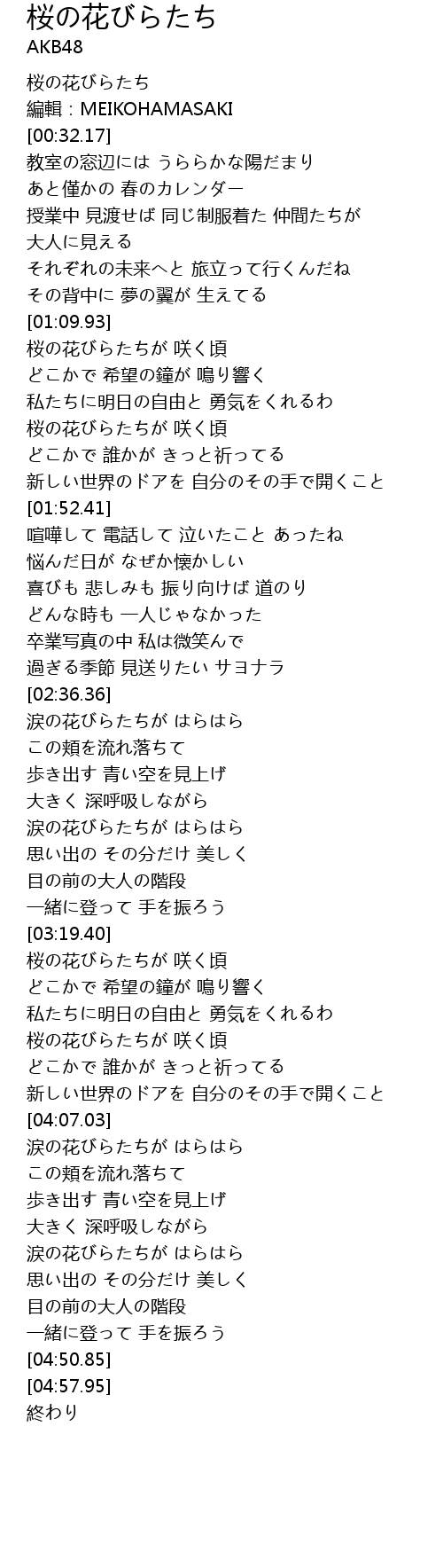 | [00:00.00] | 桜の花びらたち |