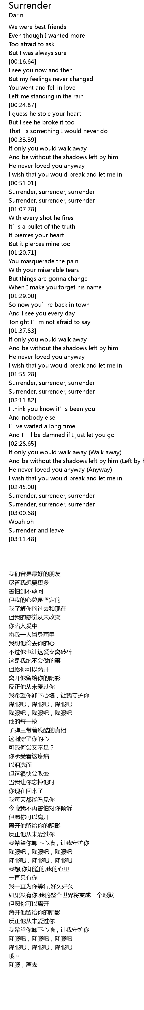 | [01:55.52] | Surrender, surrender, surrender |