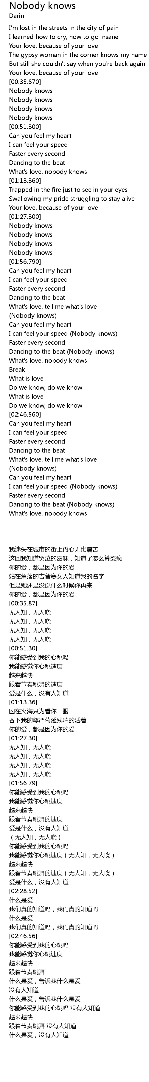I can feel your speed (Nobody knows) |