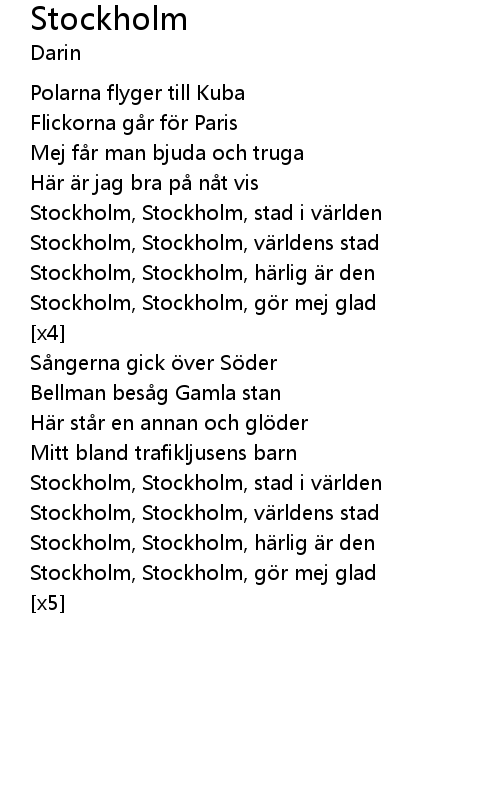 | Stockholm, Stockholm, h rlig r den | |