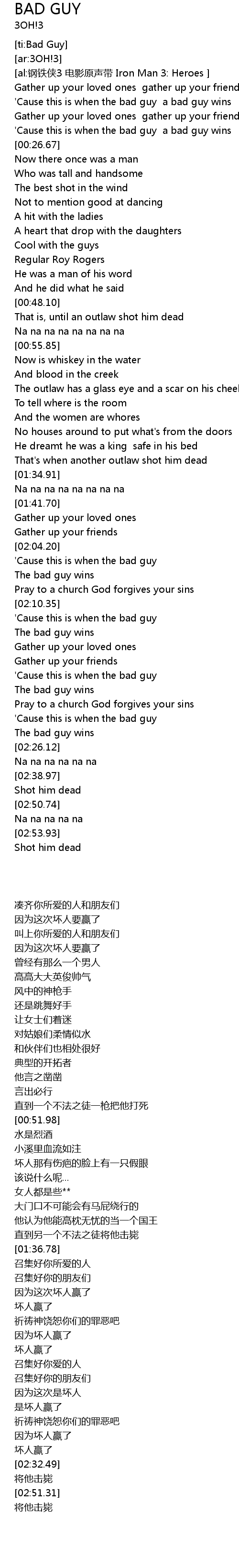 | [02:18.46] | The bad guy wins |