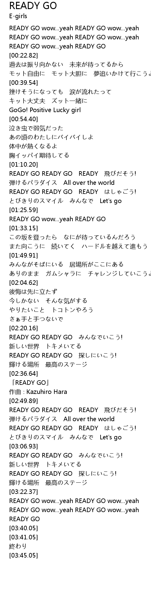 | [03:07.56] | READY GO READY GO みんなでいこう! |