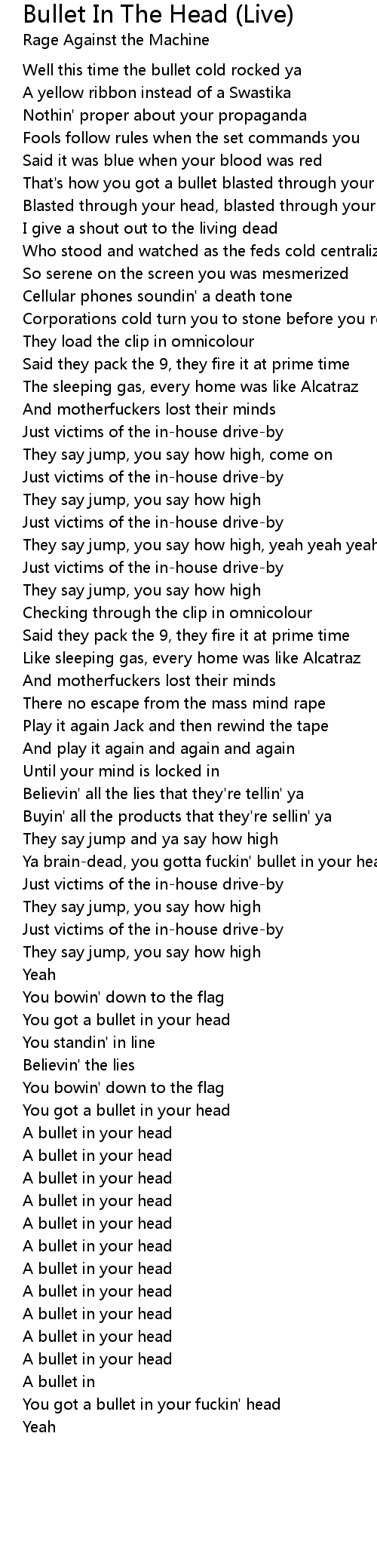 You got a bullet in your head |