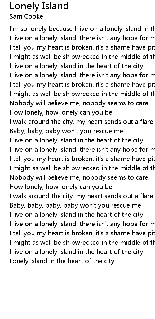 I'm so lonely because I live on a lonely island in the heart of the city |
