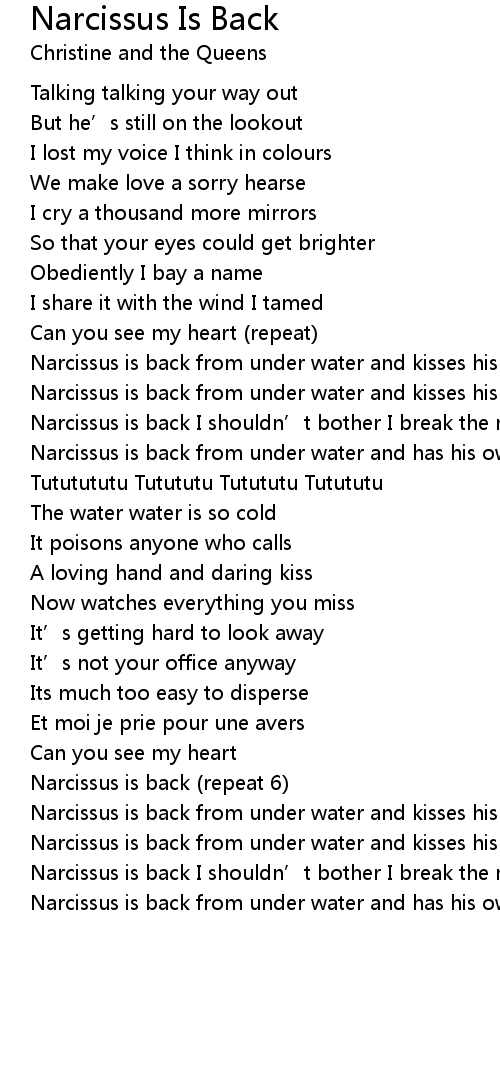 | Narcissus is back I shouldn' t bother I break the mirrors that I meet | |