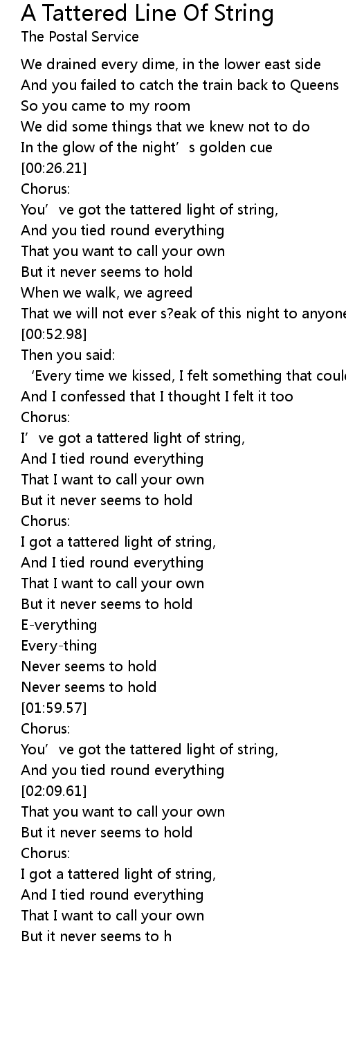 | [02:03.69] | You’ve got the tattered light of string, |