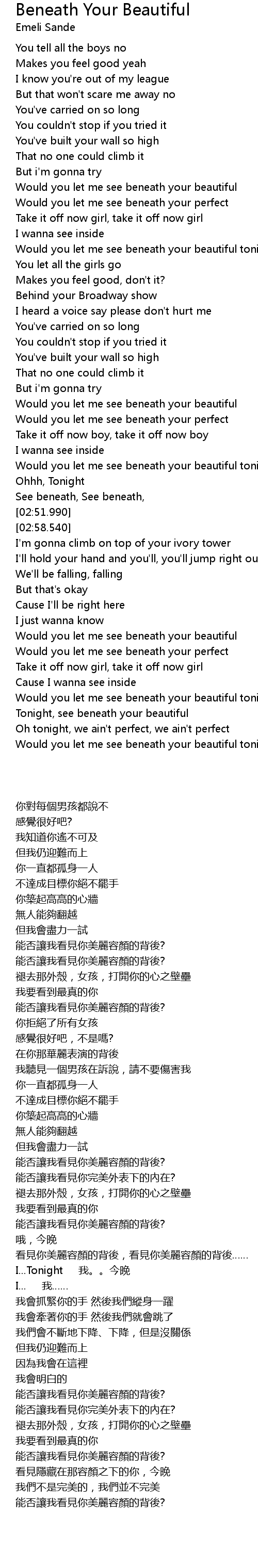 Would you let me see beneath your beautiful |
