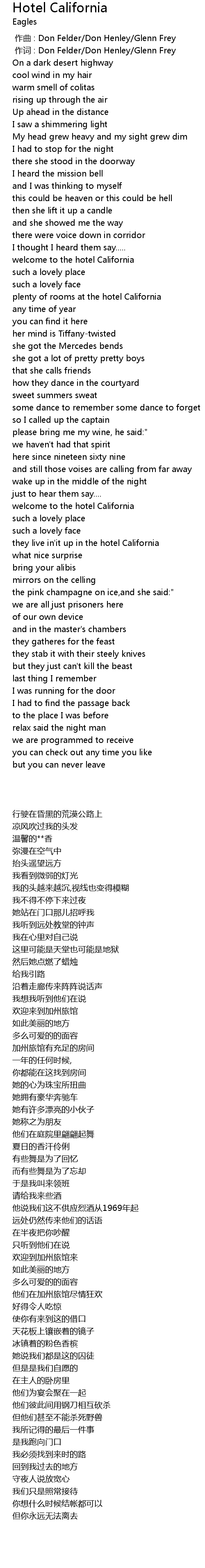 | 歌曲 | Hotel California |