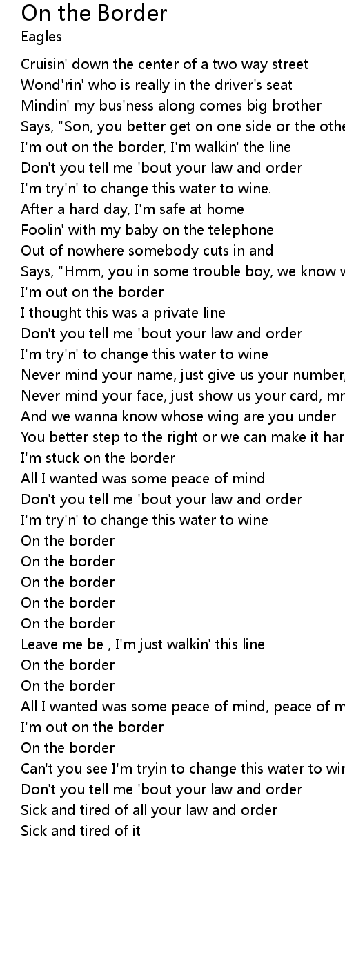 I'm out on the border, I'm walkin' the line |