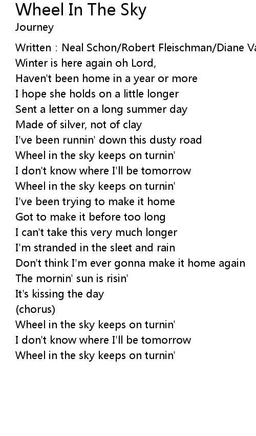 | Wheel in the sky keeps on turnin' |