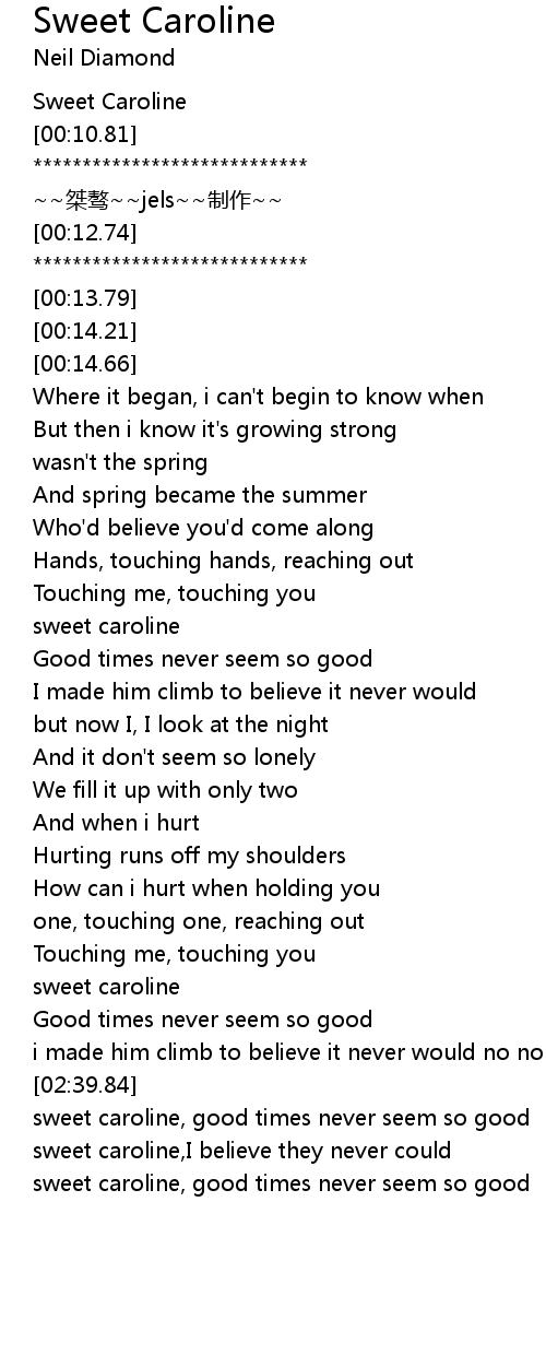 | [03:13.92] | sweet caroline, good times never seem so good |