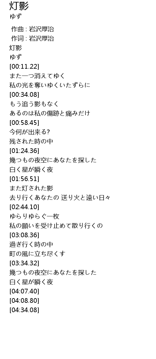 | [00:00.00] | 作曲 : 岩沢厚治 |