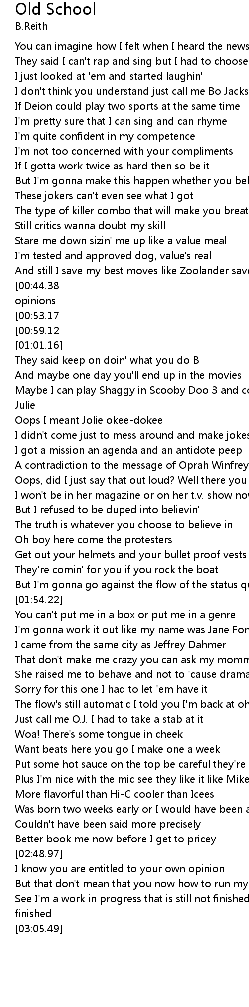 | [00:15.57] | I don't think you understand just call me Bo Jackson |