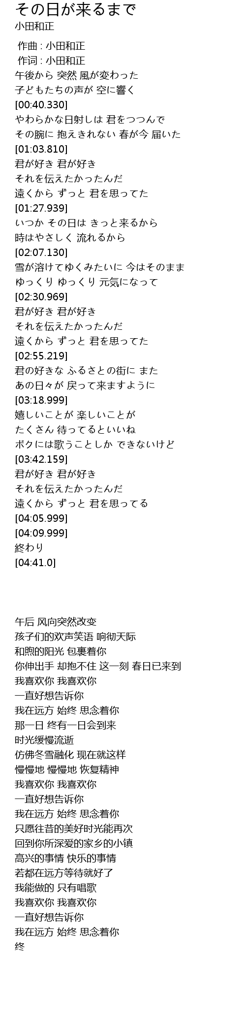 | [00:00.00] | 作曲 : 小田和正 |