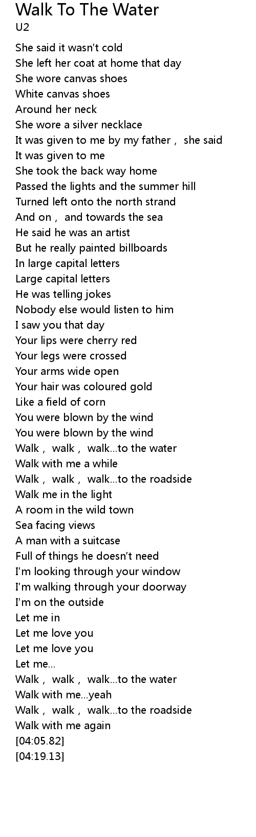 | [02:14.26] | Walk, walk, walk... to the water |