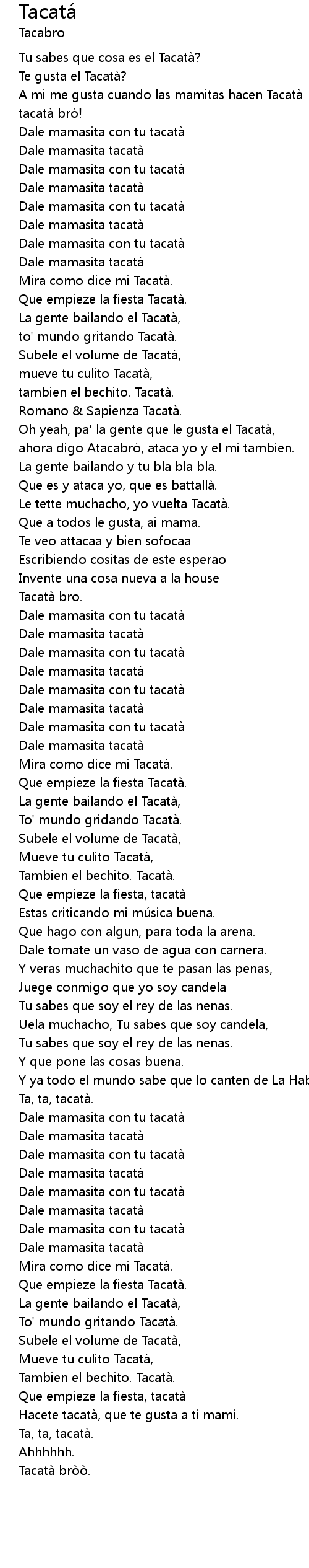 | Dale mamasita con tu tacatà | |