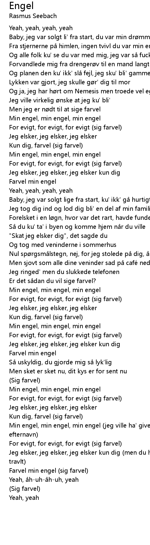 | [03:41.59] | Min engel, min engel, min engel jeg ville ha' givet dig mit efternavn |