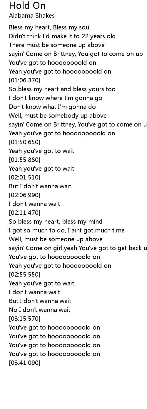 You've got to hoooooooold on |