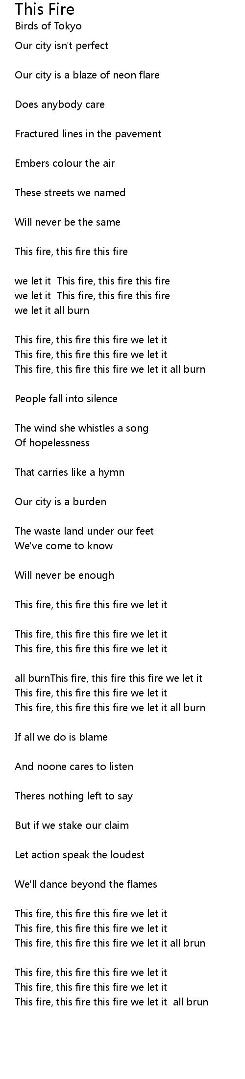 This fire, this fire this fire we let it all brun |
