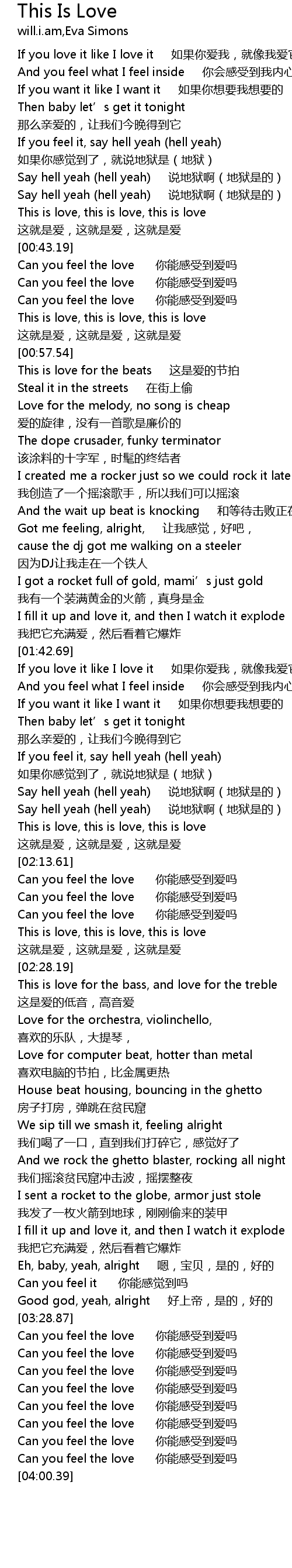 | [00:54.31] | This is love, this is love, this is love zhe jiu shi ai, zhe jiu shi ai, zhe jiu shi ai |