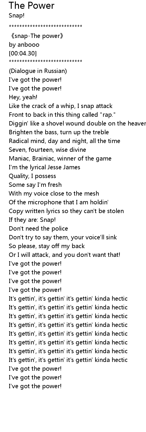 | [02:46.04] | It' s gettin', it' s gettin' it' s gettin' kinda hectic |